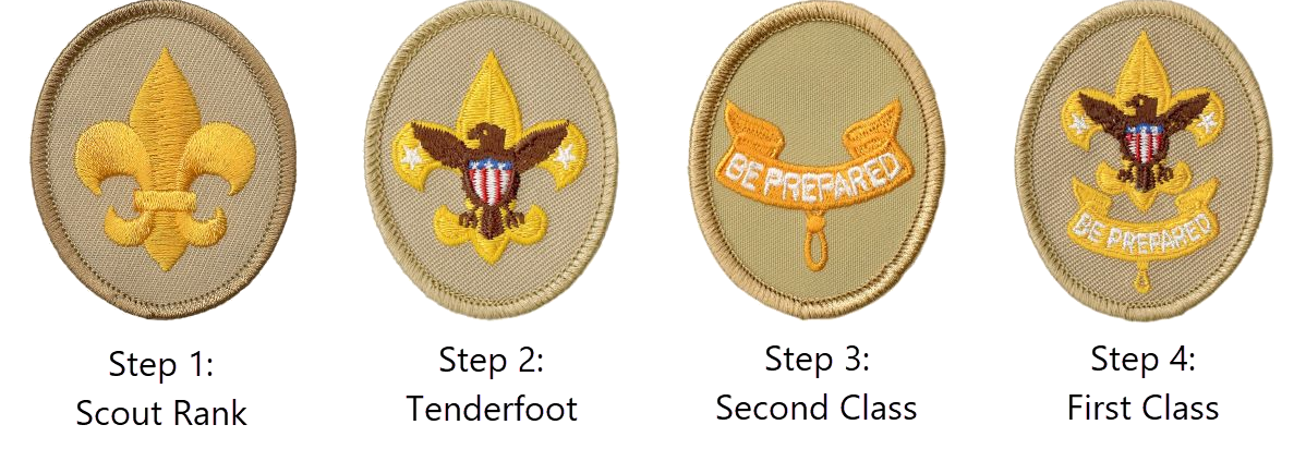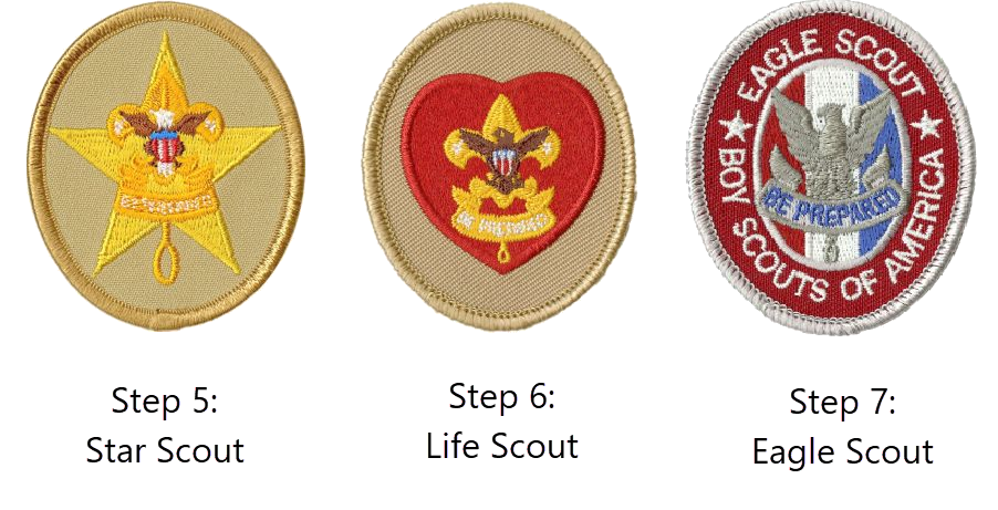 Scout, Tenderfoot, Second Class, First Class, Star, Life, Eagle